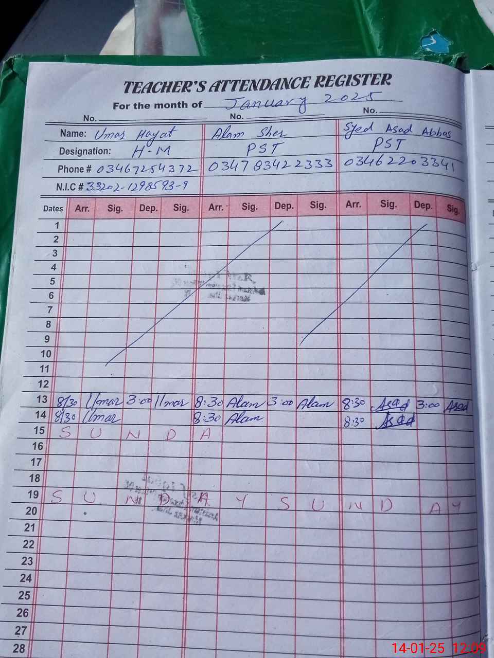 | Name: Um**** Ha**** Designation: (School Headmaster's/Headmistress's) PST Phone/Cell Number: 03**** |