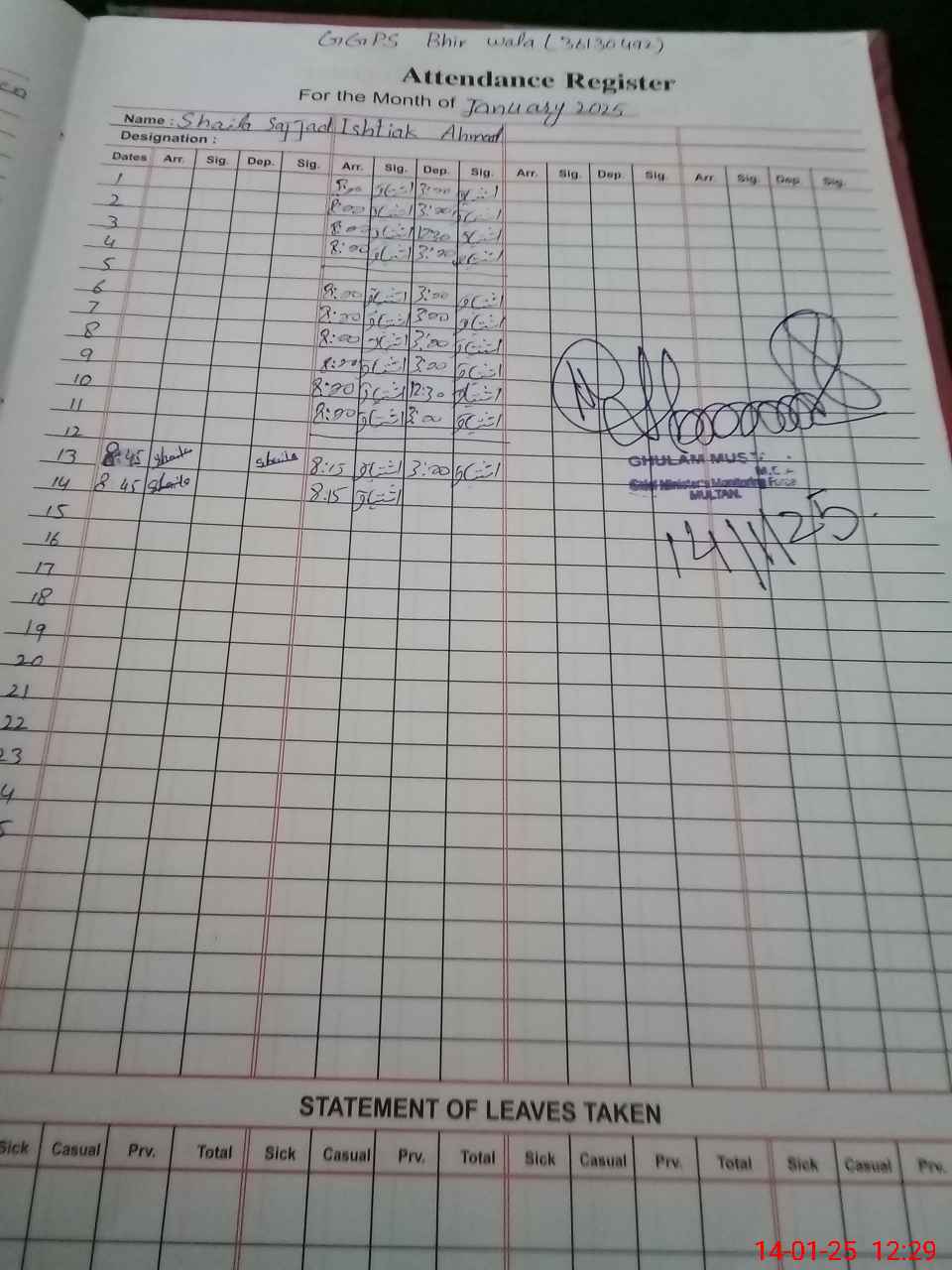 | Name: SA**** MA**** Designation: (School Headmaster's/Headmistress's) PST Phone/Cell Number: 03**** |