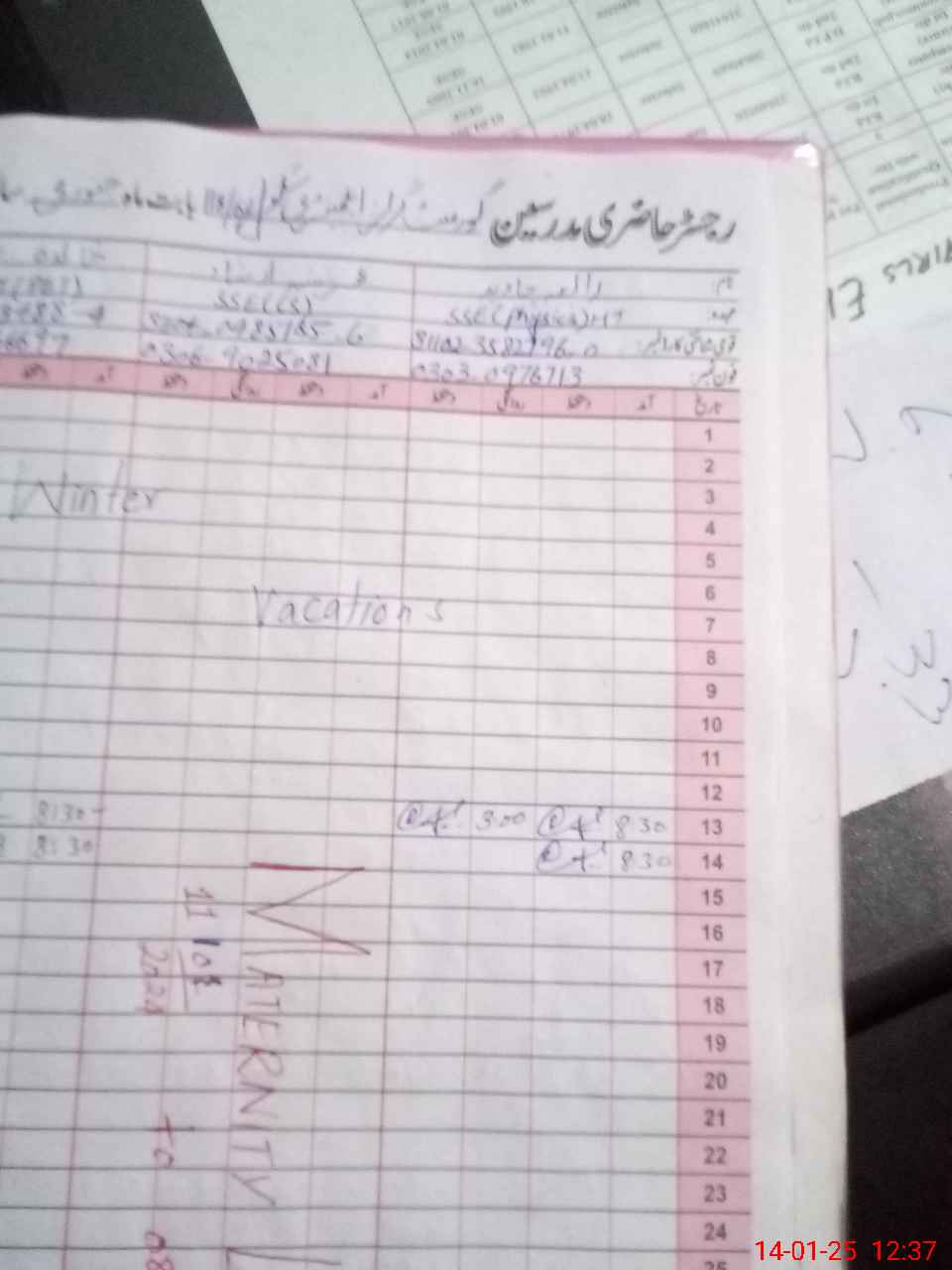 | CNIC | Full Name | Designation | R/C | Absence During Last Calender Month |