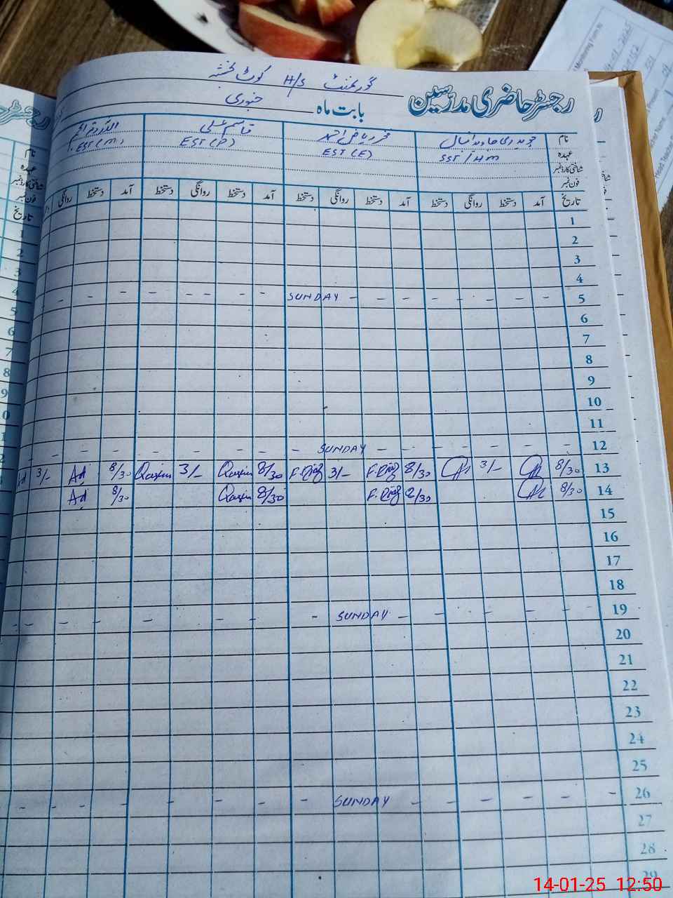 | CNIC | Full Name | Designation | R/C | Absence During Last Calender Month |