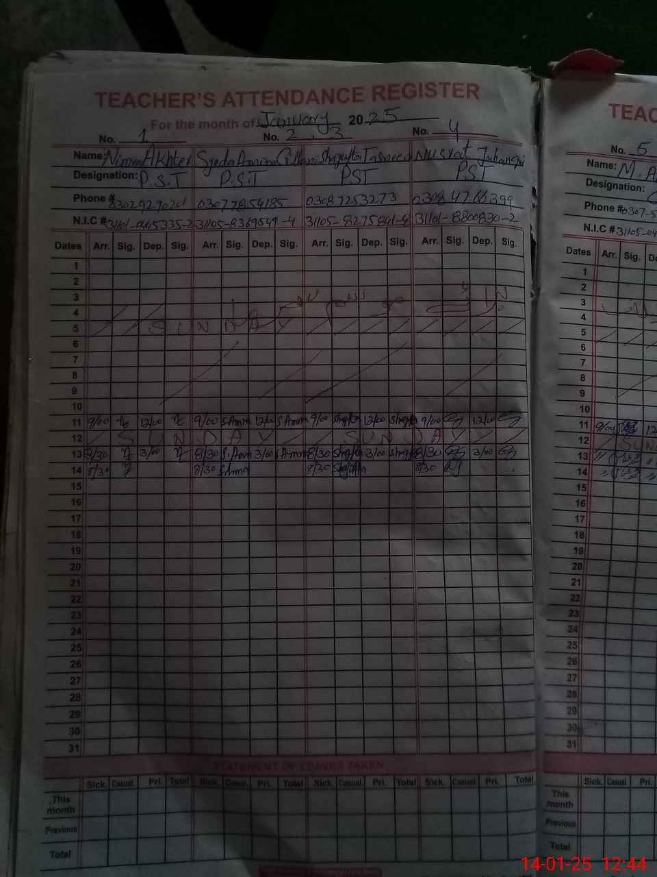 | CNIC | Full Name | Designation | R/C | Absence During Last Calender Month |