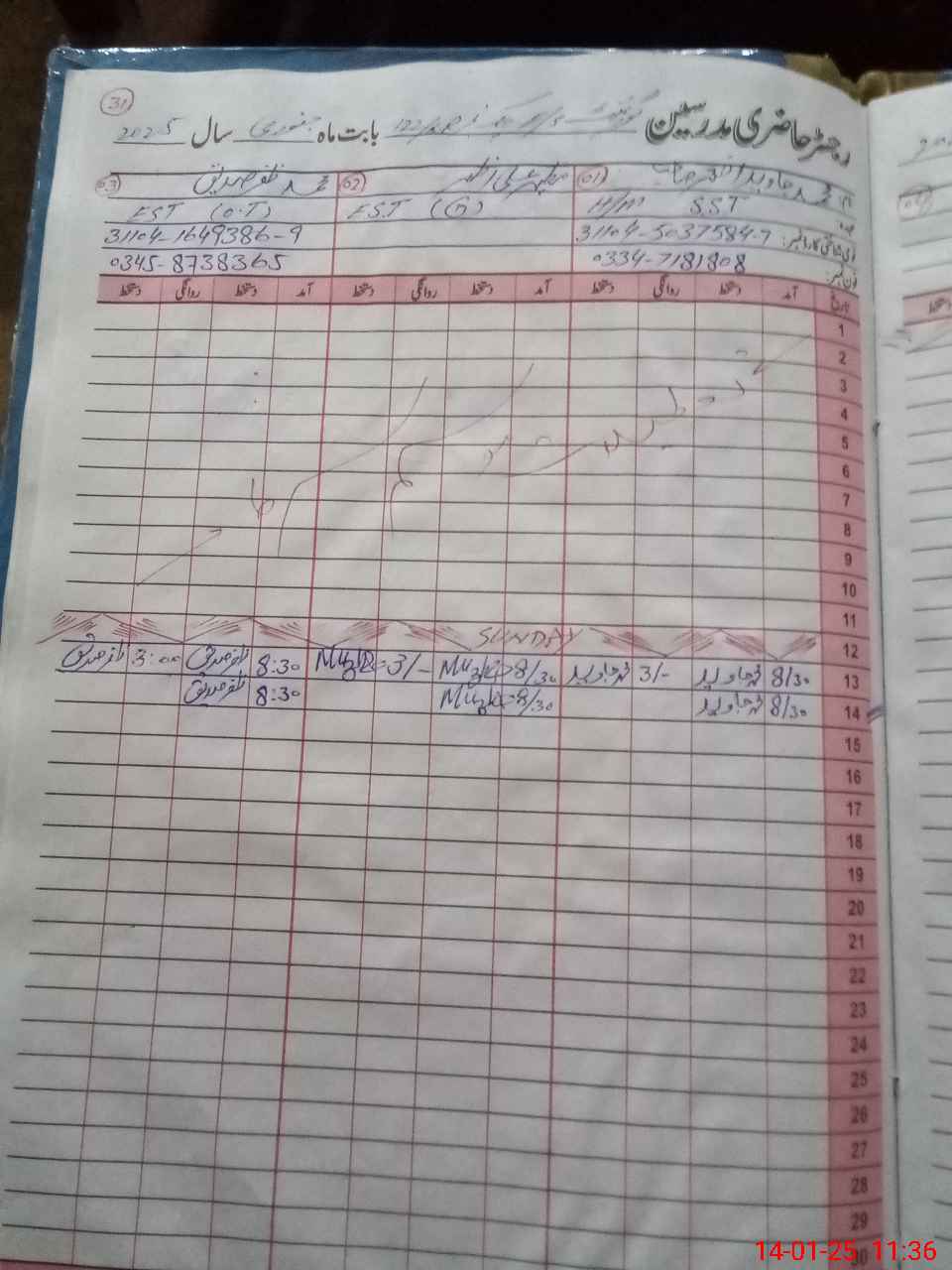 | Name: Mu**** Ja**** Ak**** Designation: (School Headmaster's/Headmistress's) S.S.T. Phone/Cell Number: 03**** |