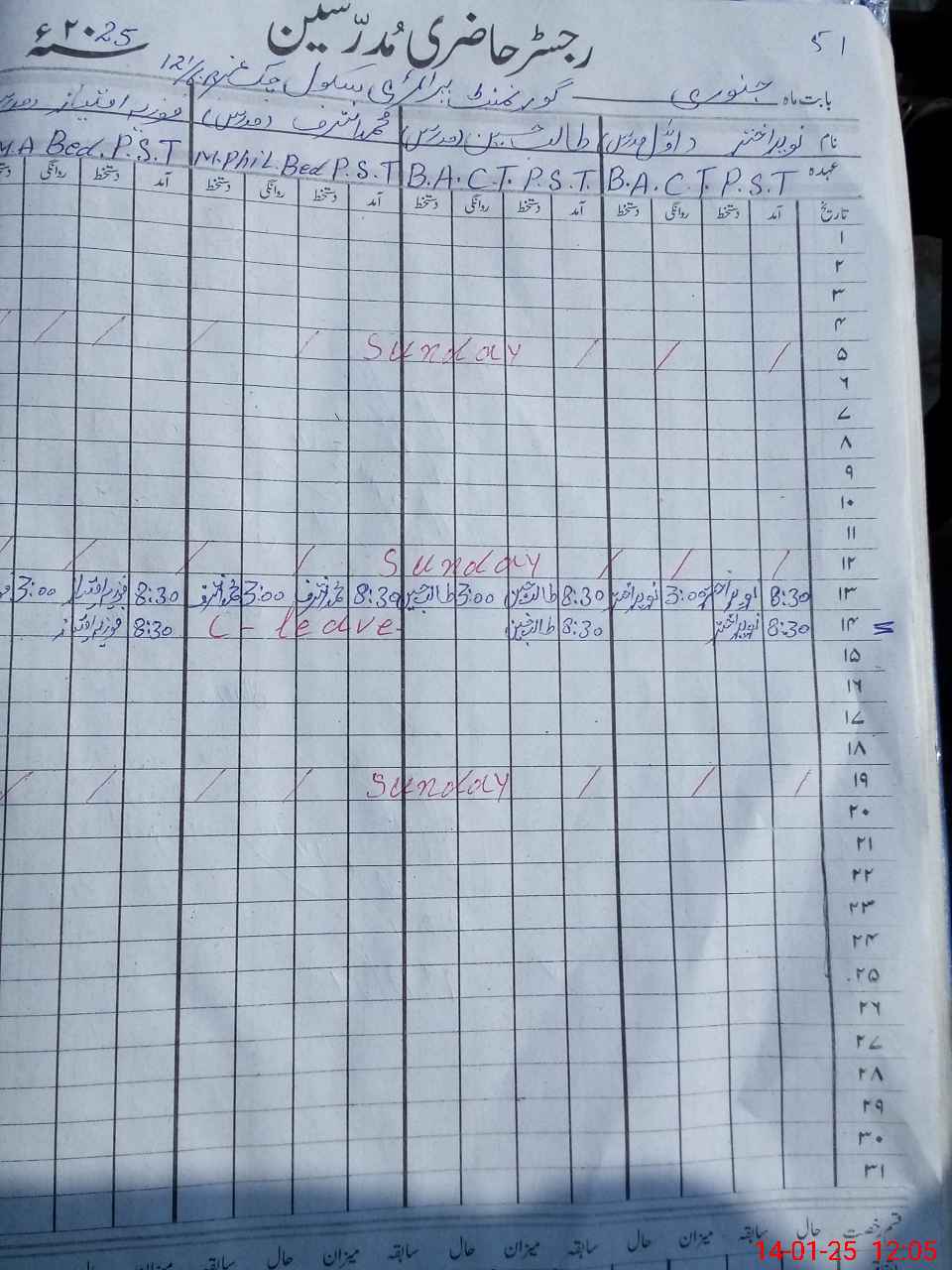 | CNIC | Full Name | Designation | R/C | Absence During Last Calender Month |