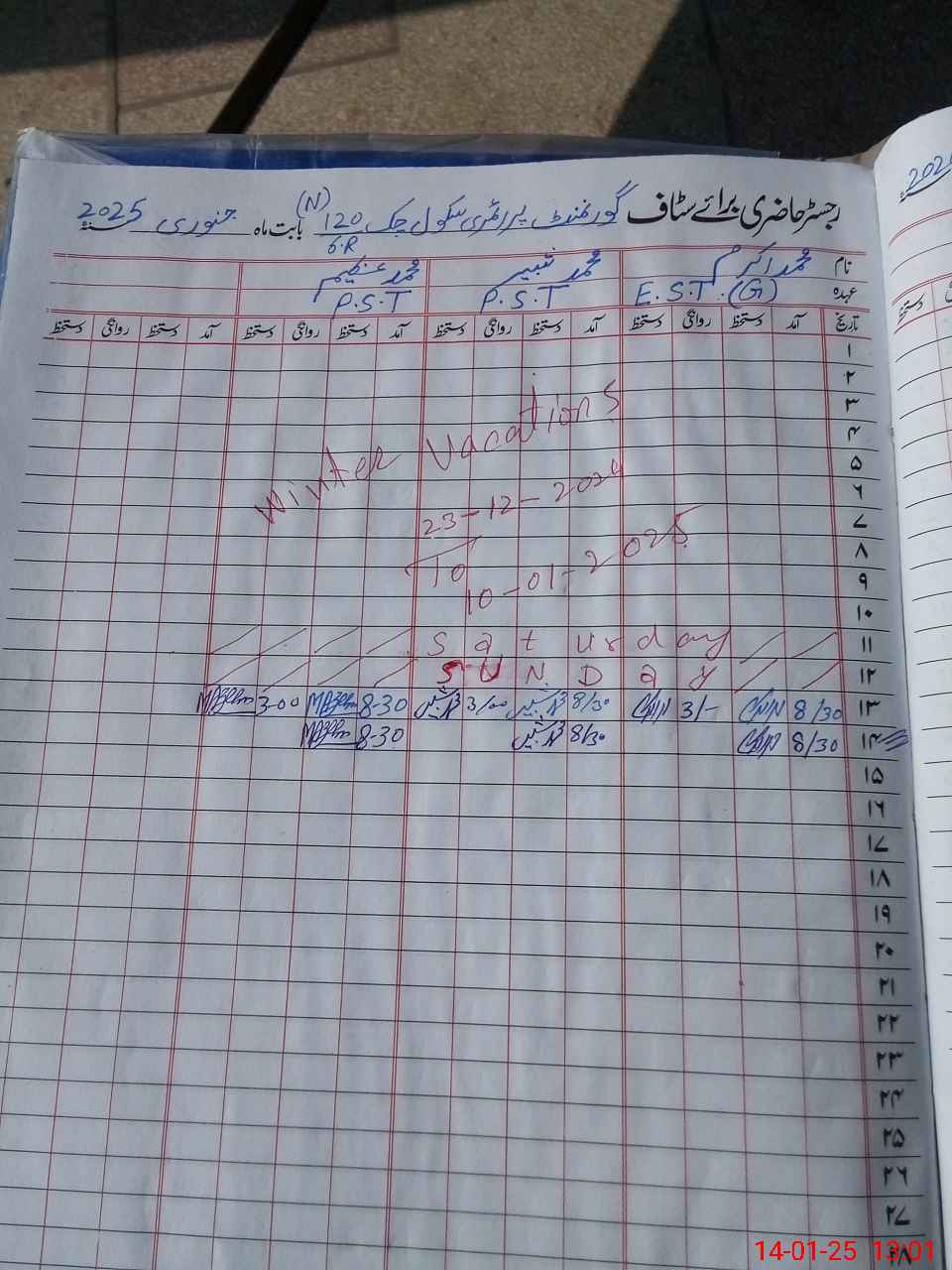 | CNIC | Full Name | Designation | R/C | Absence During Last Calender Month |