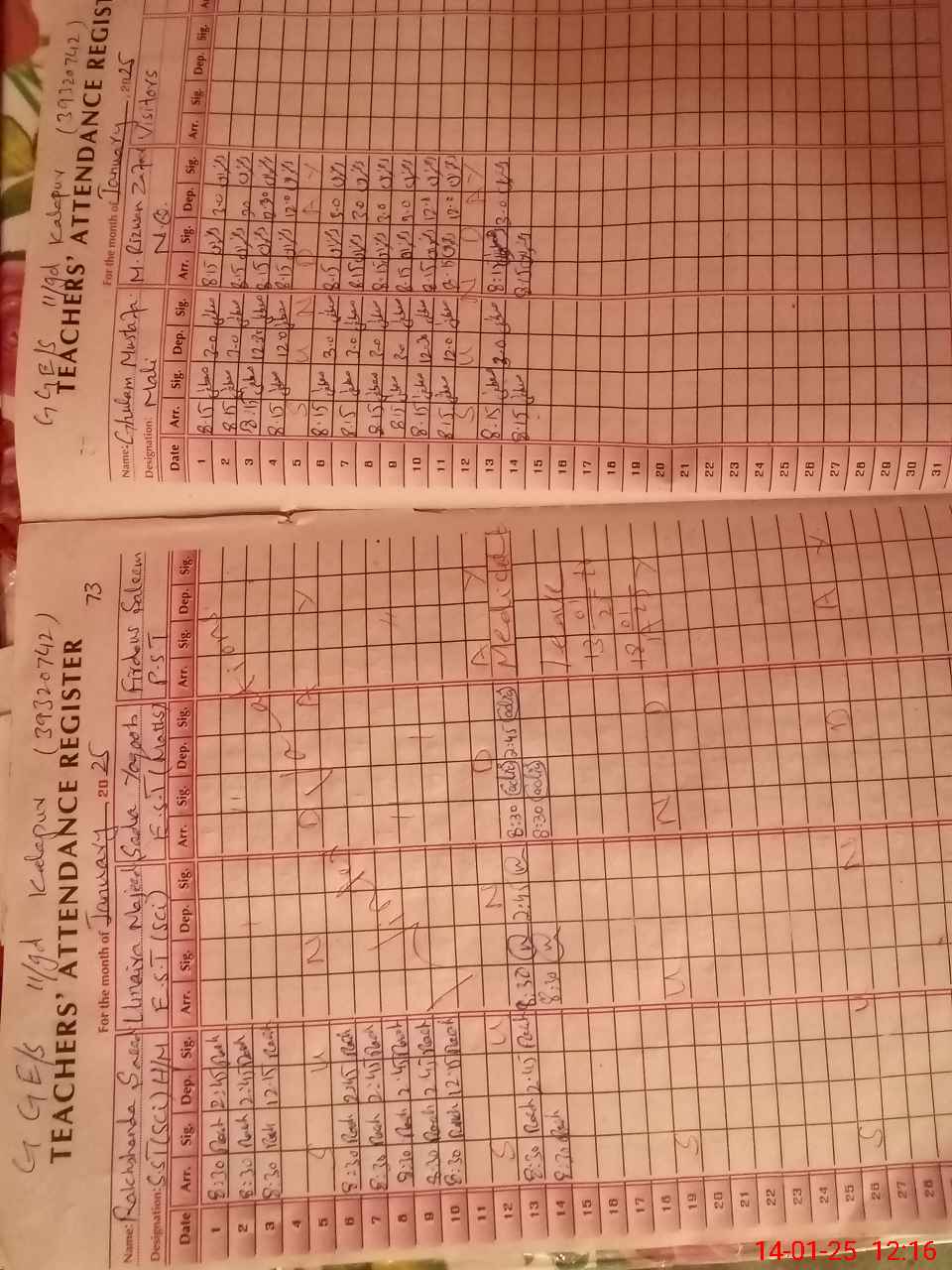 | No. of Students Present - Female | 0 | 0 | 42 | 23 | 19 | 20 | 15 | 14 | 13 | 18 | 12 | 176 | ||||