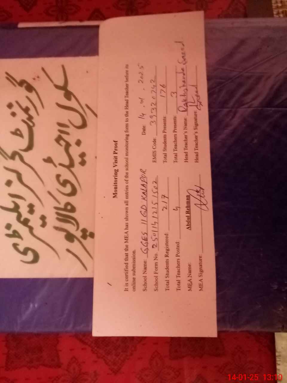 | EMIS Code: 39320742 | Name of School: GGES 11/G.D KALAPUR | |||