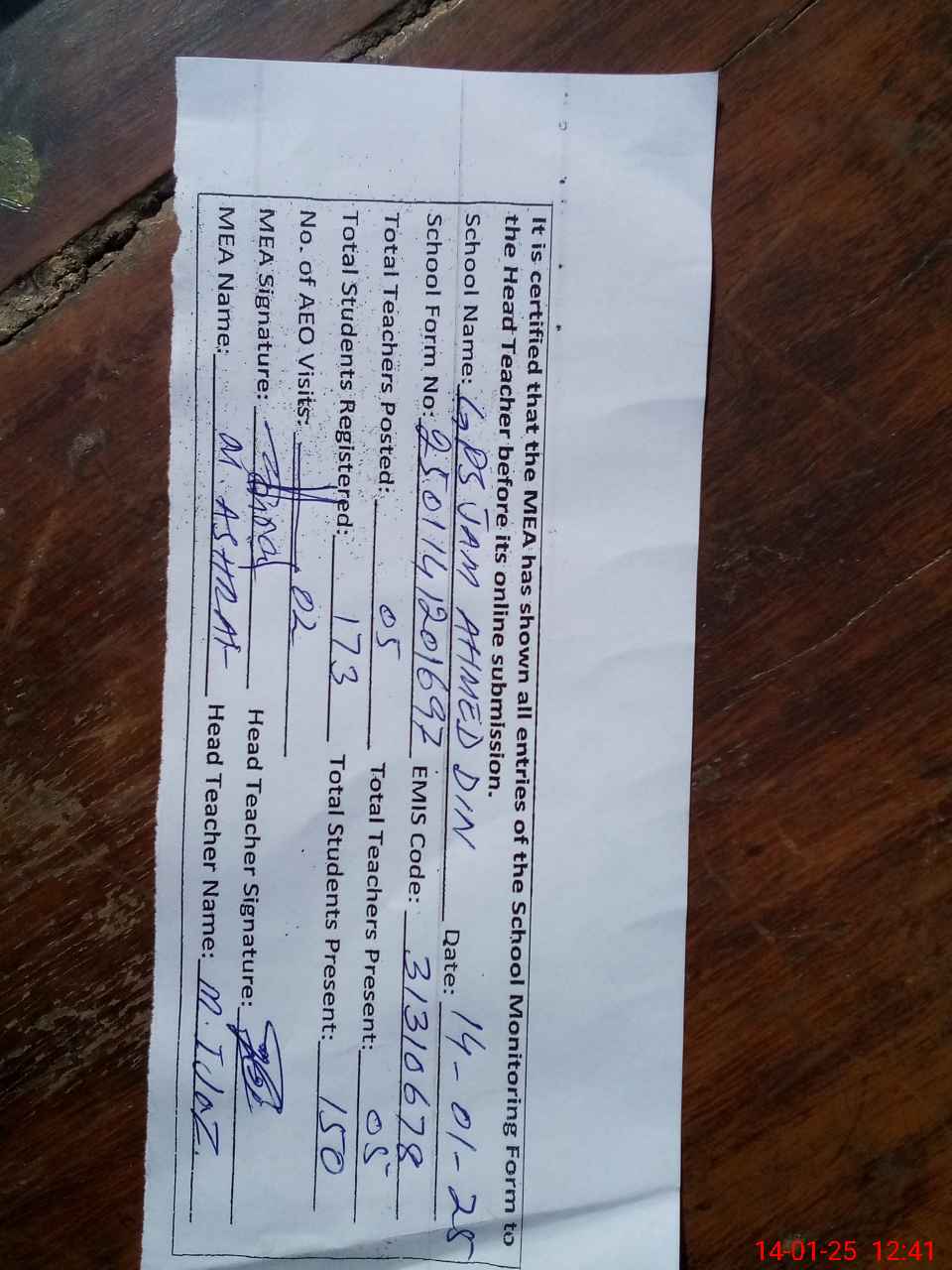 | EMIS Code: 31310678 | Name of School: GPS JAM AHMED AHMED DIN KAVARD | |||