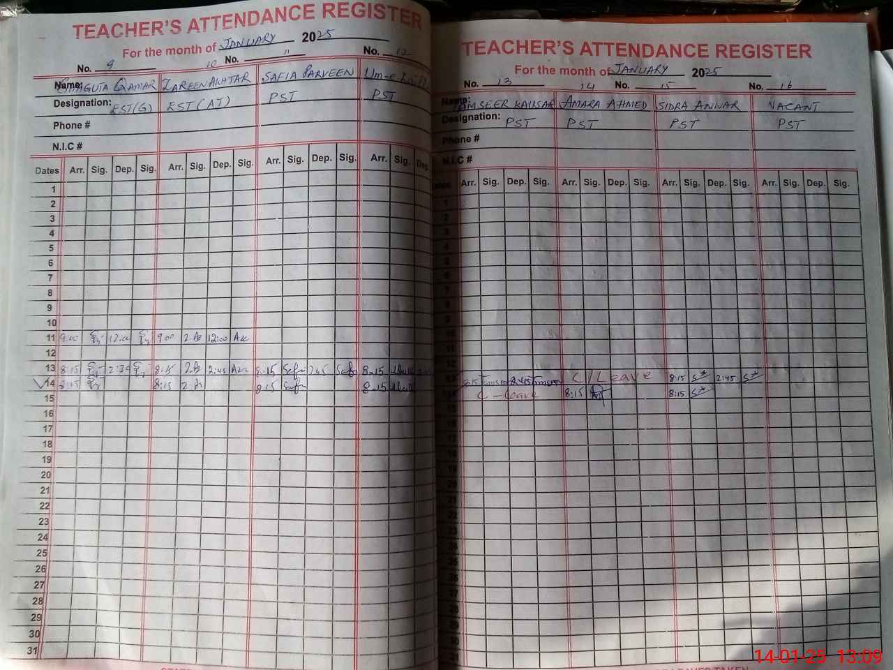 | CNIC | Full Name | Designation | R/C | Absence During Last Calender Month |