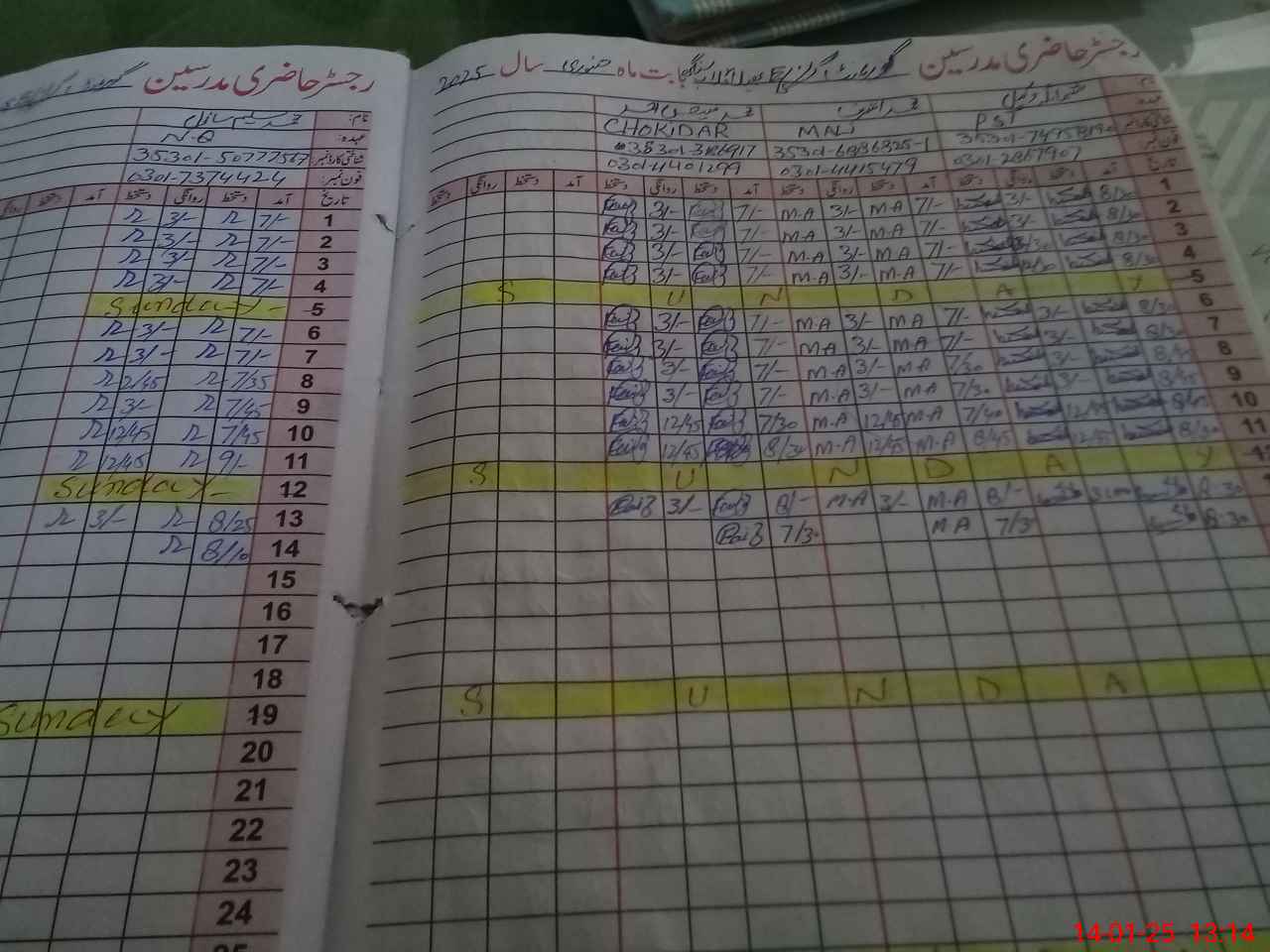 | CNIC | Full Name | Designation | R/C | Absence During Last Calender Month |