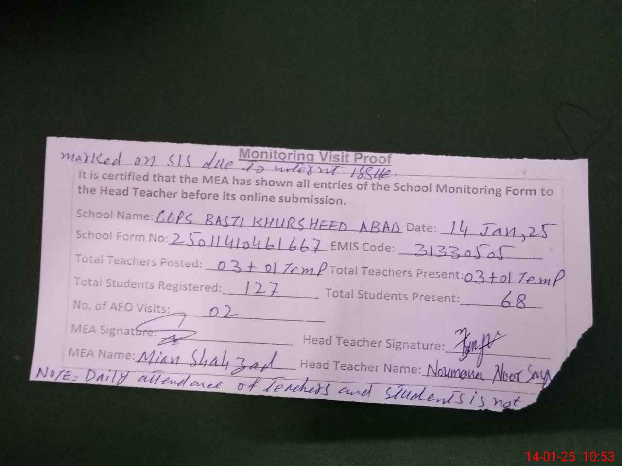 | EMIS Code: 31330505 | Name of School: GGPS BASTI KHURSHEED ABAD | |||