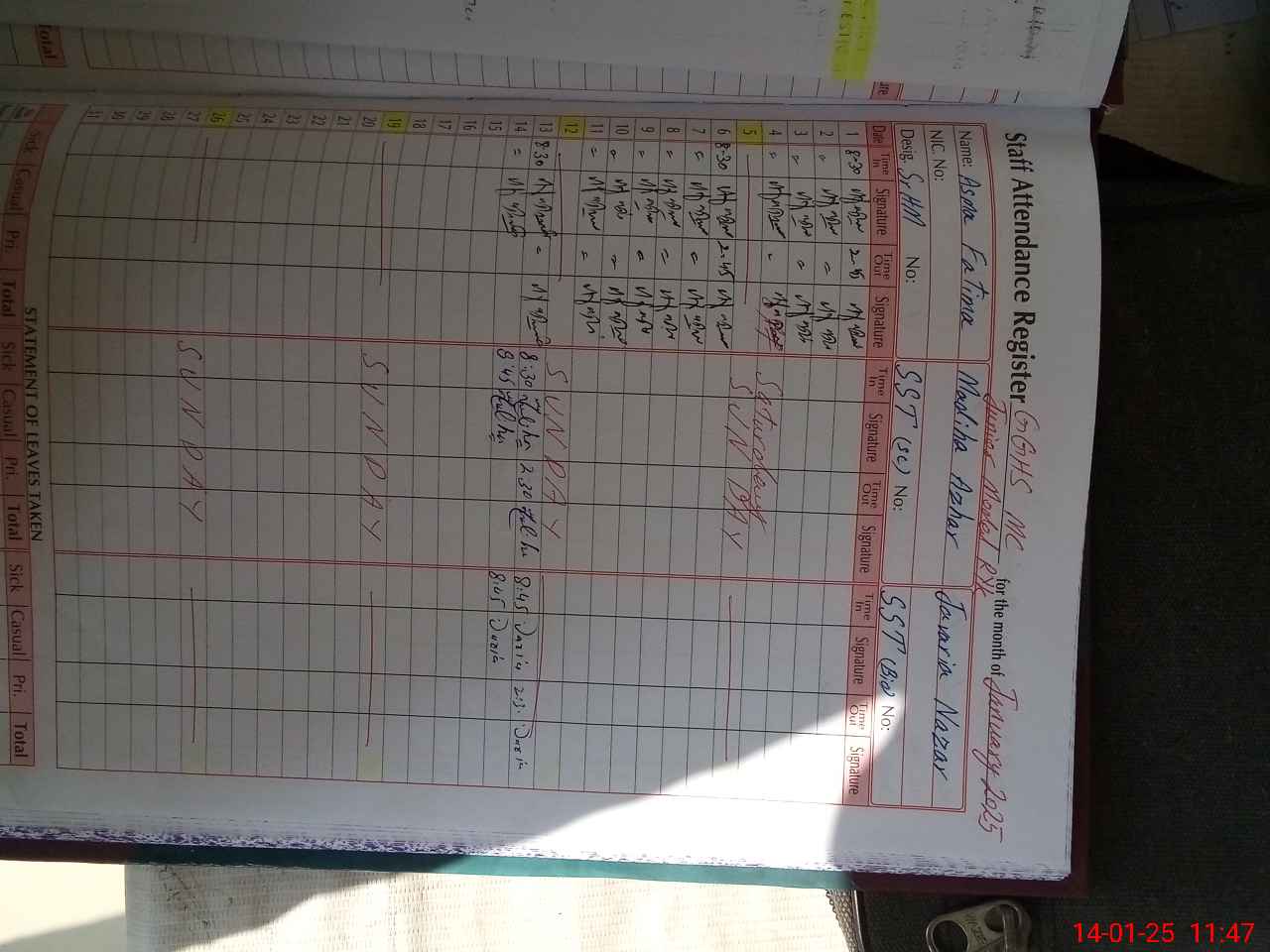 | 31**** | Ja**** Kh**** | Regular | 1 | 15 | 0 | 0 | 0 | 0 | 0 | 0 | 1 | Casual | |