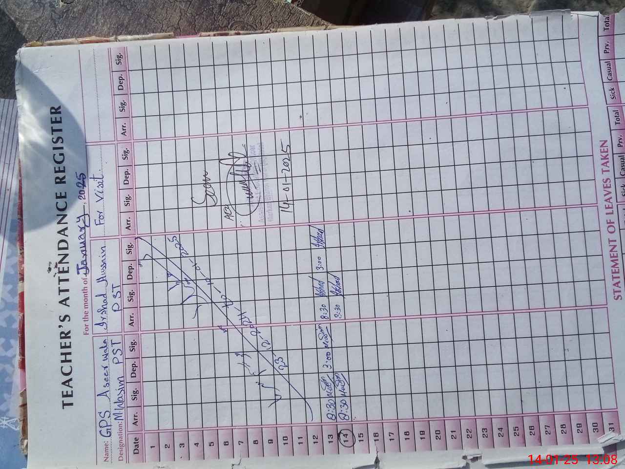 | CNIC | Full Name | Designation | R/C | Absence During Last Calender Month |