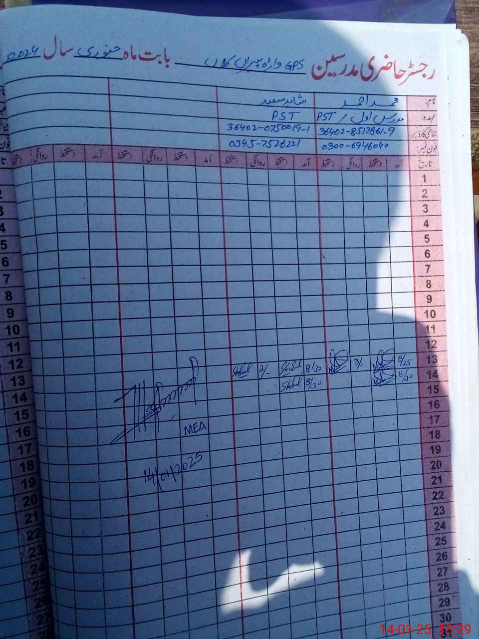 | Name: MU**** AH**** Designation: (School Headmaster's/Headmistress's) PST Phone/Cell Number: 03**** |
