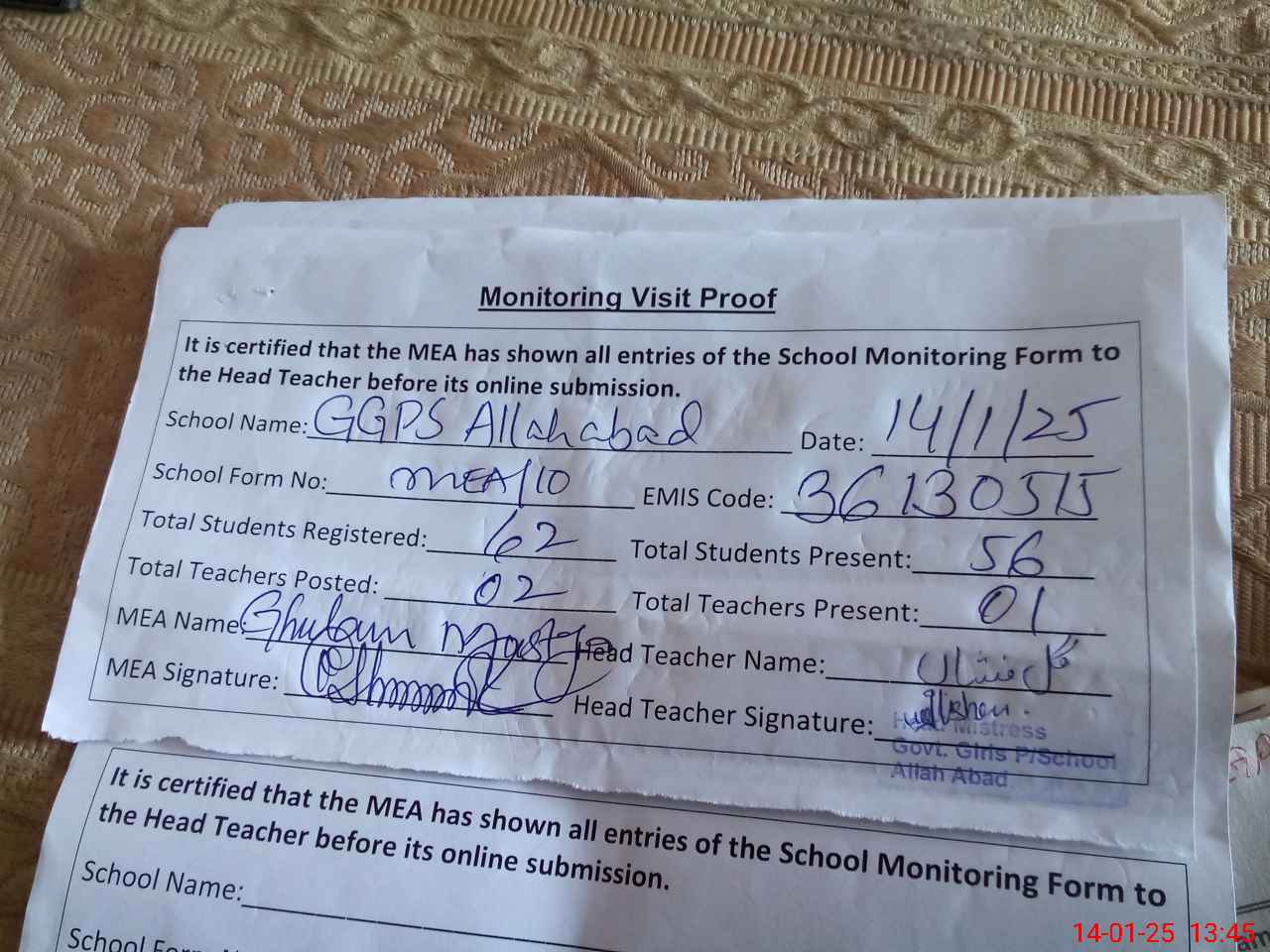 | EMIS Code: 36130515 | Name of School: GGPS ALLAH ABAD MULTAN | |||