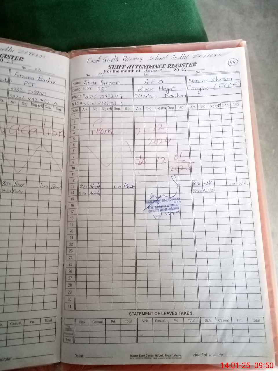 | Name: So**** Na**** Designation: (School Headmaster's/Headmistress's) PST Phone/Cell Number: 03**** |