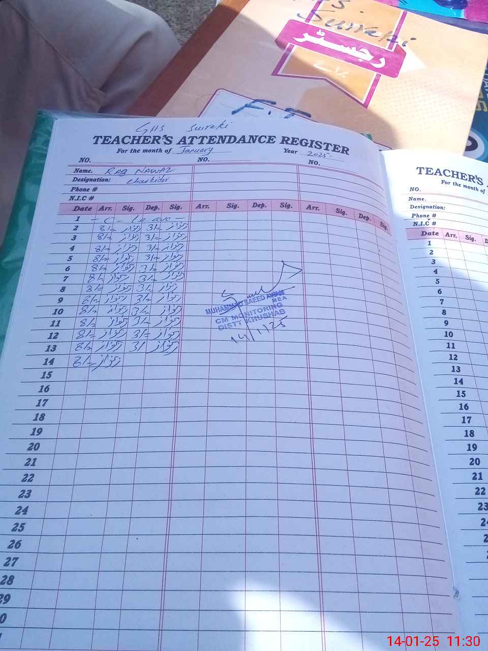 | Monitoring Date: 14-01-2025 | Start Time: 14-01-2025 11:07 AM | End Time: 14-01-2025 11:30 AM | Name of MEA: MU**** SA**** | |