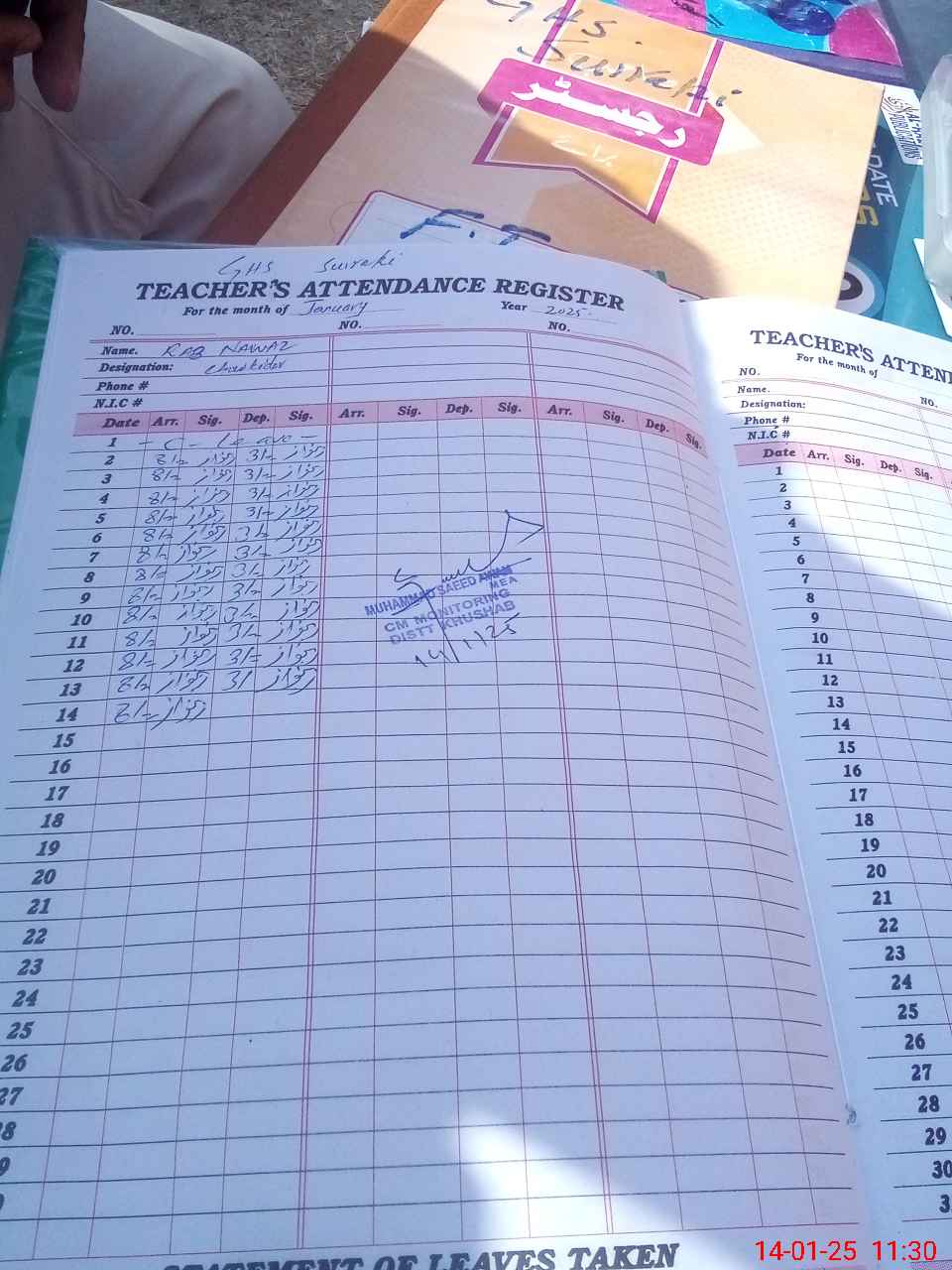 | Attendance Register | Head Teacher | MEA with School | Visit Proof |