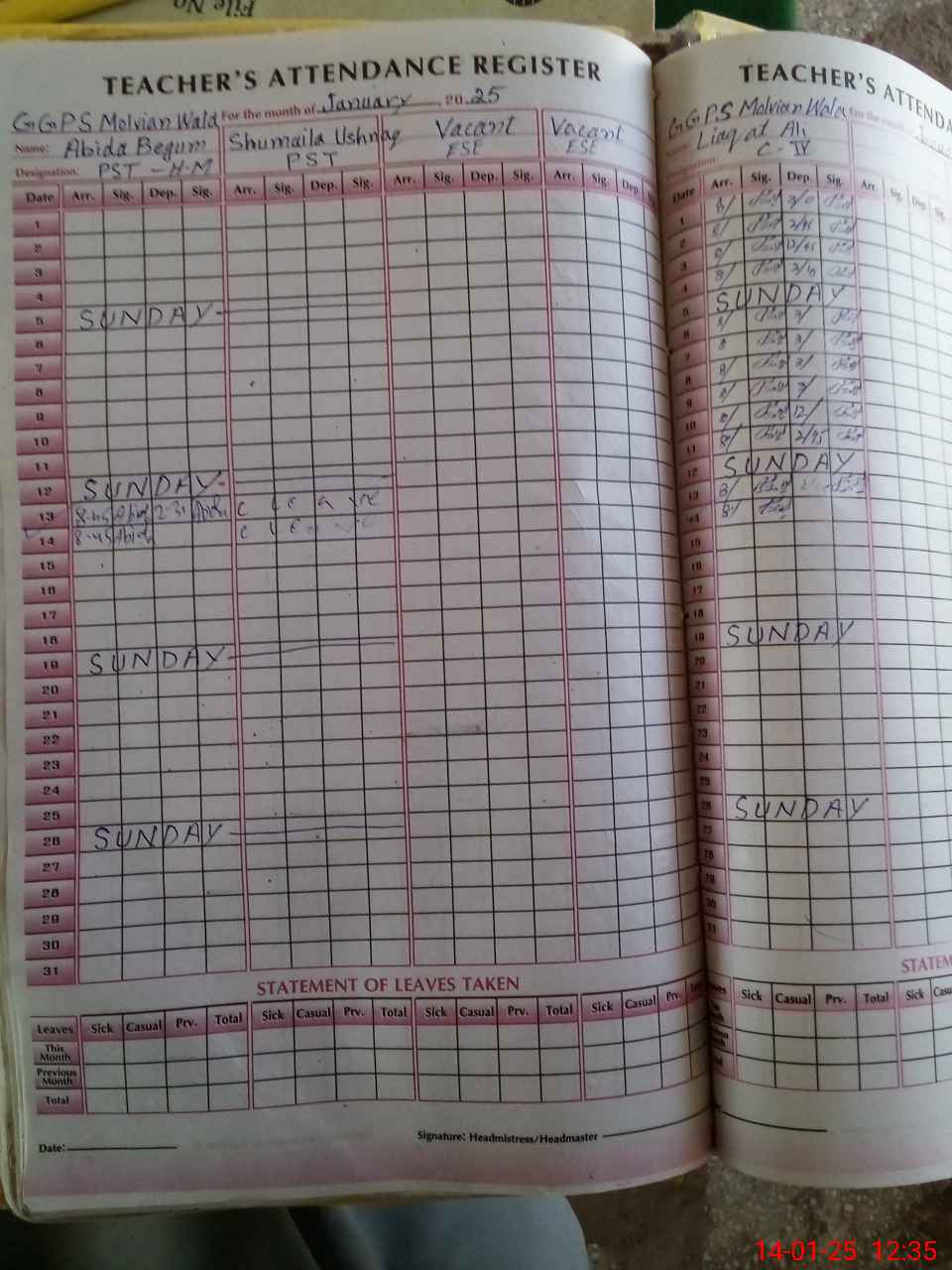 | Name: Ab**** Be**** Designation: (School Headmaster's/Headmistress's) PST Phone/Cell Number: 03**** |