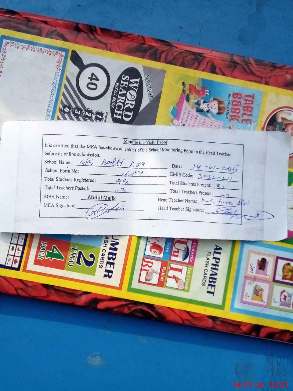 | Attendance Register | Head Teacher | MEA with School | Visit Proof |