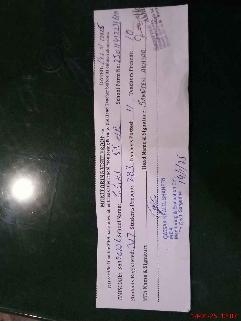 | EMIS Code: 38420236 | Name of School: GGHS CHAK NO.55 NB | |||