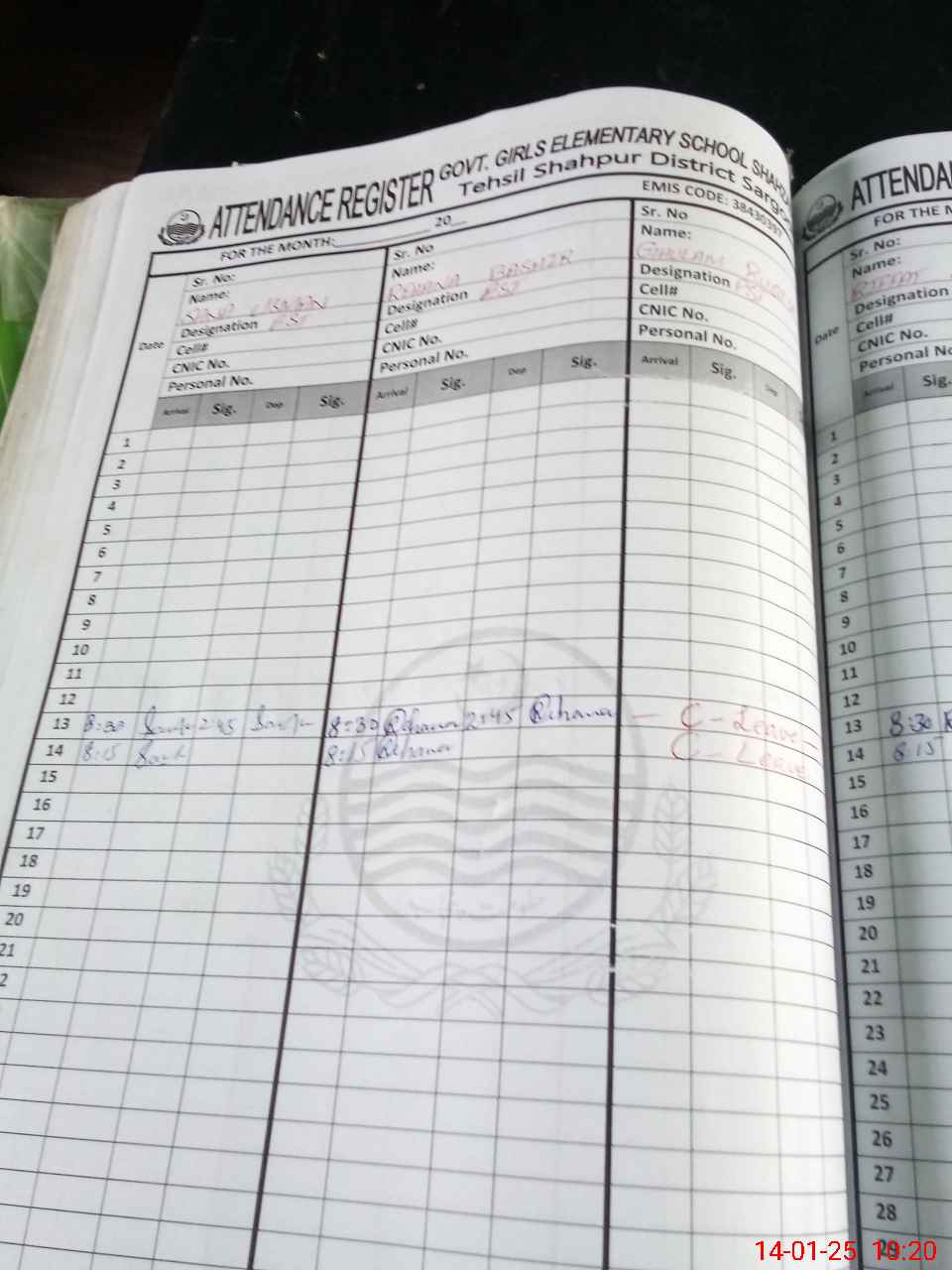 | Name: IR**** NO**** Designation: (School Headmaster's/Headmistress's) SST Phone/Cell Number: 03**** |
