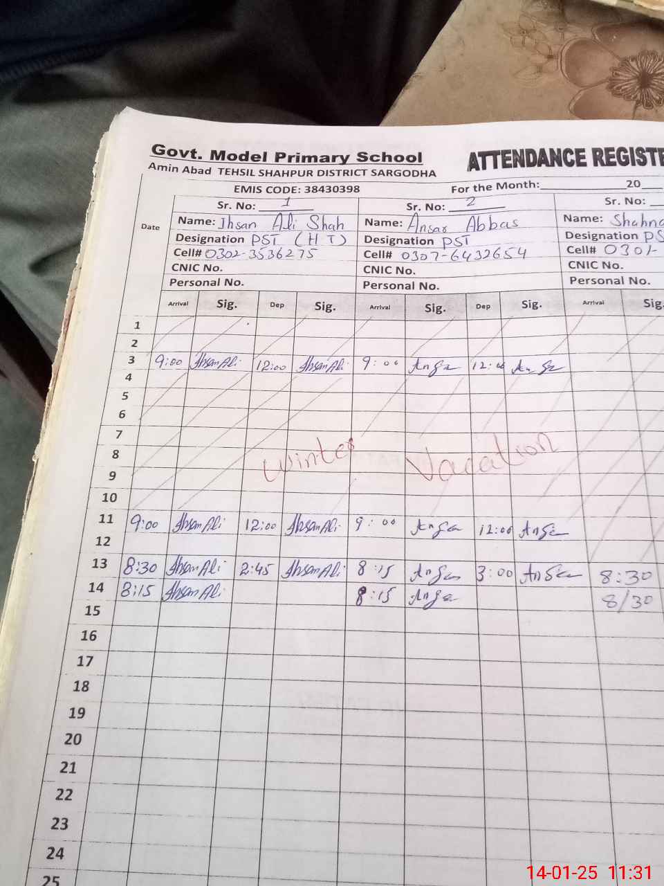 | Name: IH**** AL**** SH**** Designation: (School Headmaster's/Headmistress's) PST Phone/Cell Number: 03**** |