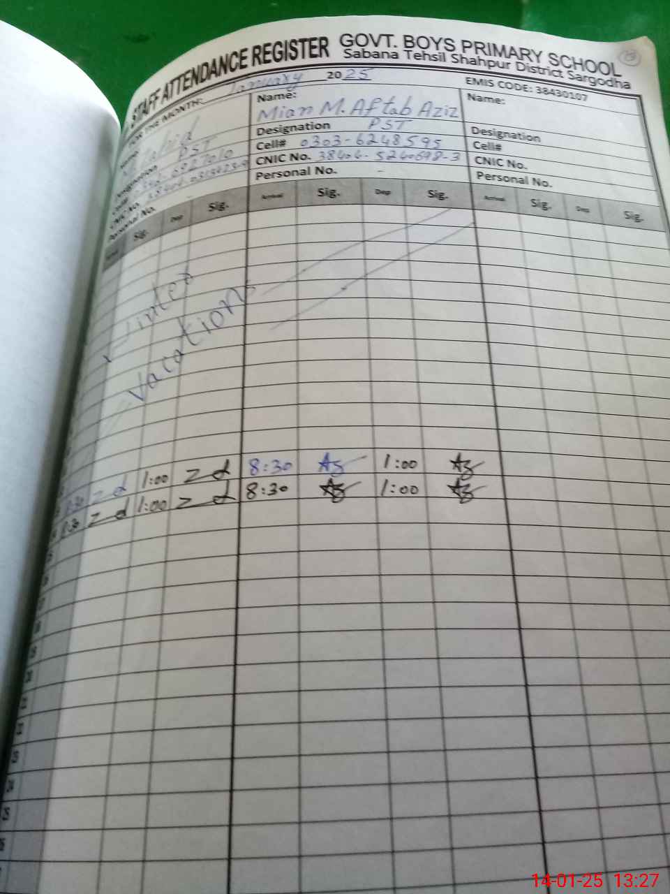 | Name: Af**** Az**** Designation: (School Headmaster's/Headmistress's) PST Phone/Cell Number: 03**** |