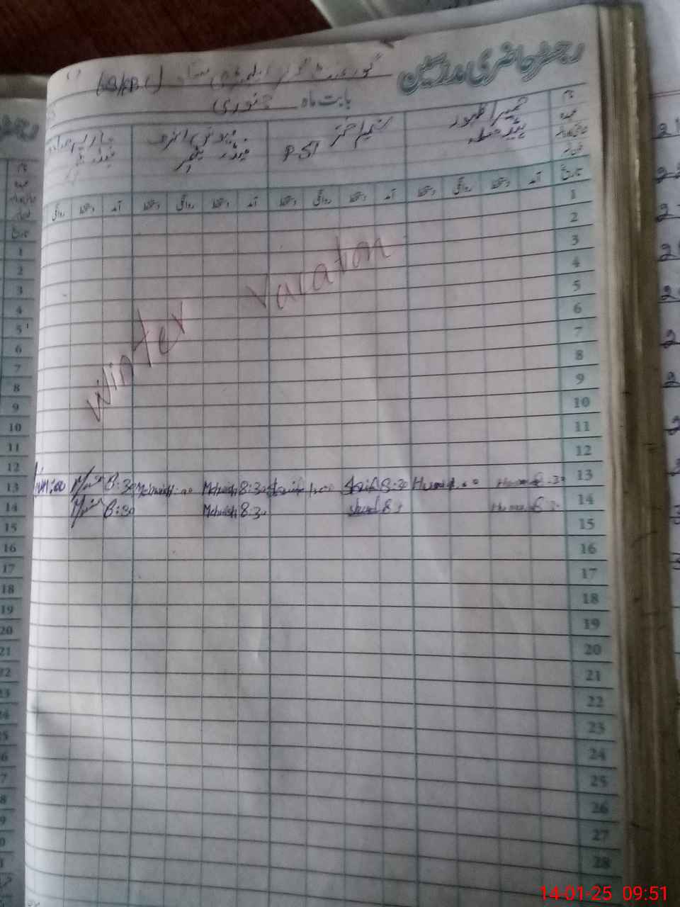 | CNIC | Full Name | Designation | R/C | Absence During Last Calender Month |