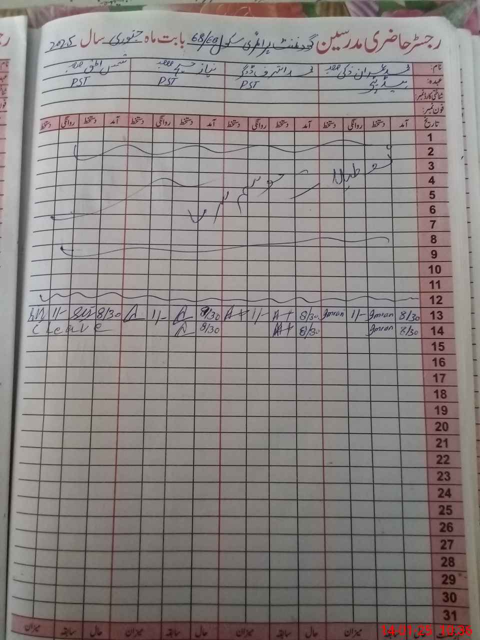 | Name: Mu**** IM**** Designation: (School Headmaster's/Headmistress's) PST Phone/Cell Number: 03**** |