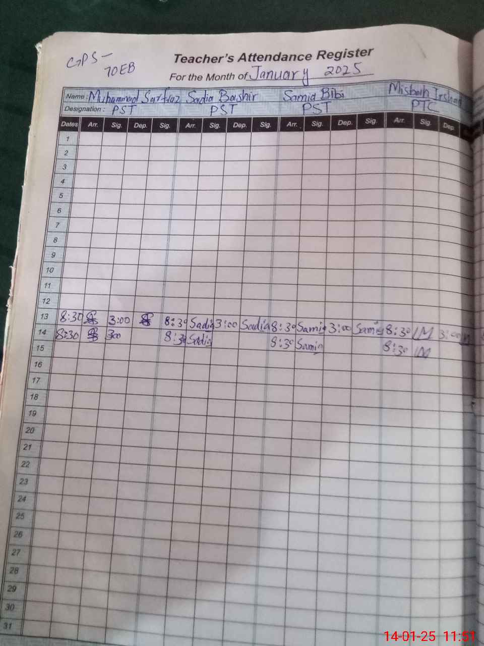 | Name: MU**** SA**** Designation: (School Headmaster's/Headmistress's) PST Phone/Cell Number: 03**** |