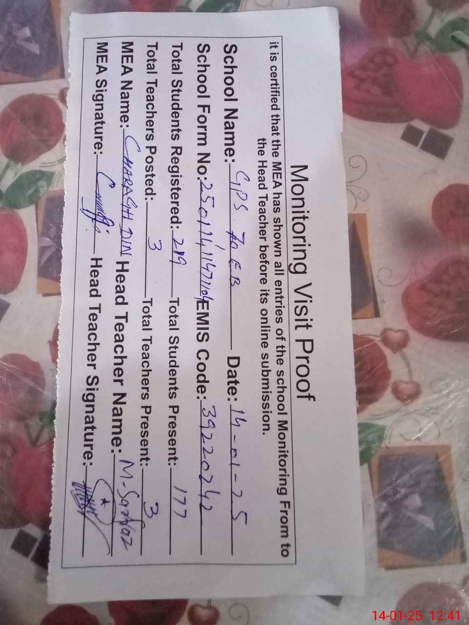 | EMIS Code: 39220243 | Name of School: GPS 70/EB ARIFWALA | |||