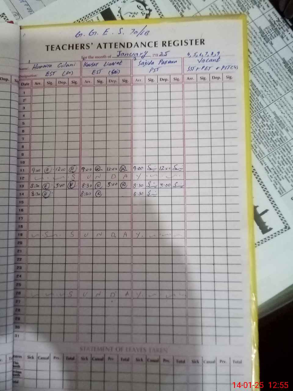 | Name: HU**** GI**** Designation: (School Headmaster's/Headmistress's) EST G Phone/Cell Number: 03**** |