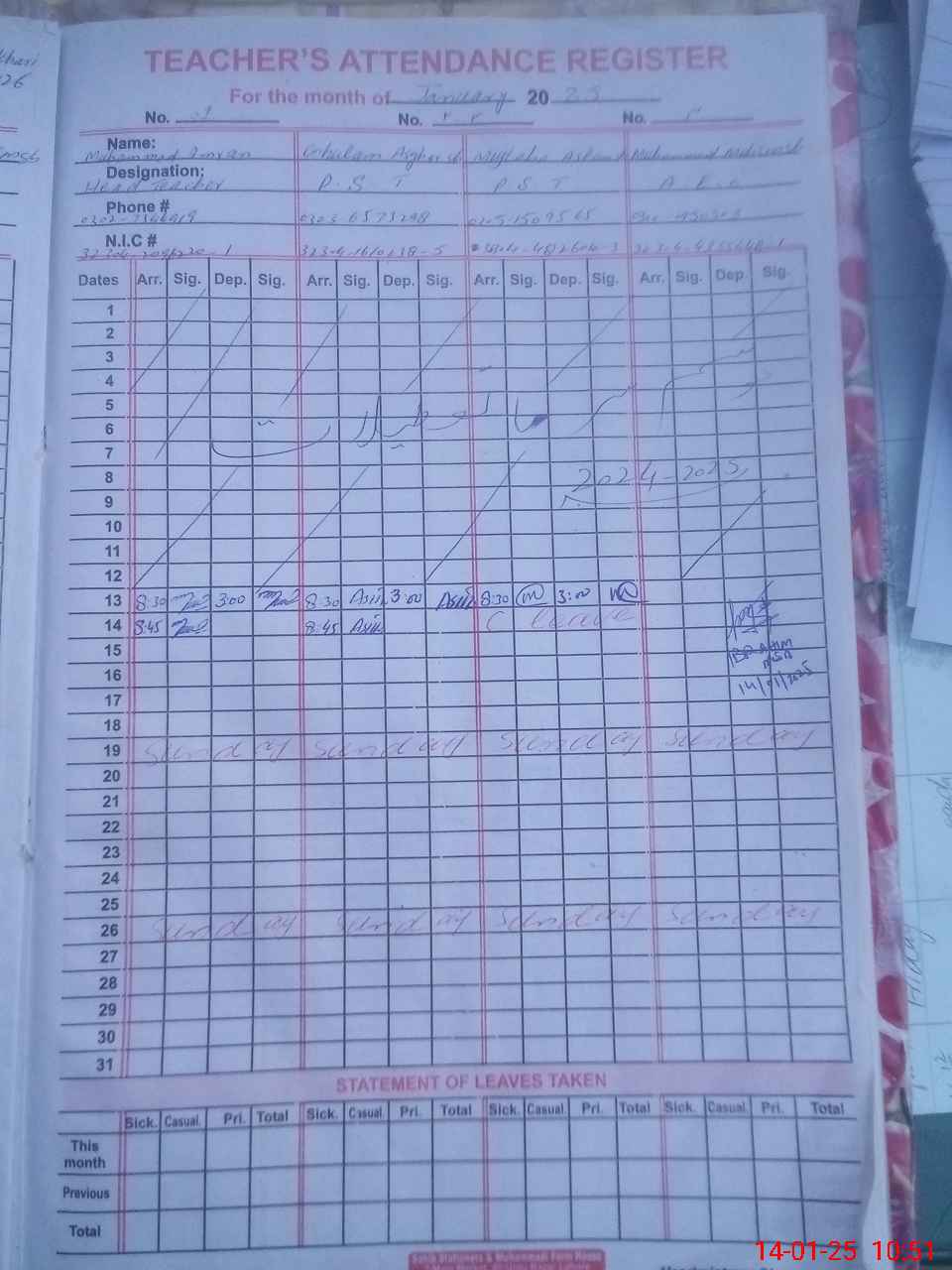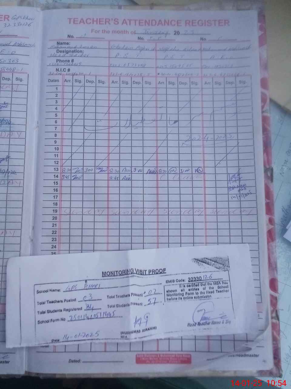 | Name: Mu**** IM**** Designation: (School Headmaster's/Headmistress's) PST Phone/Cell Number: 03**** |