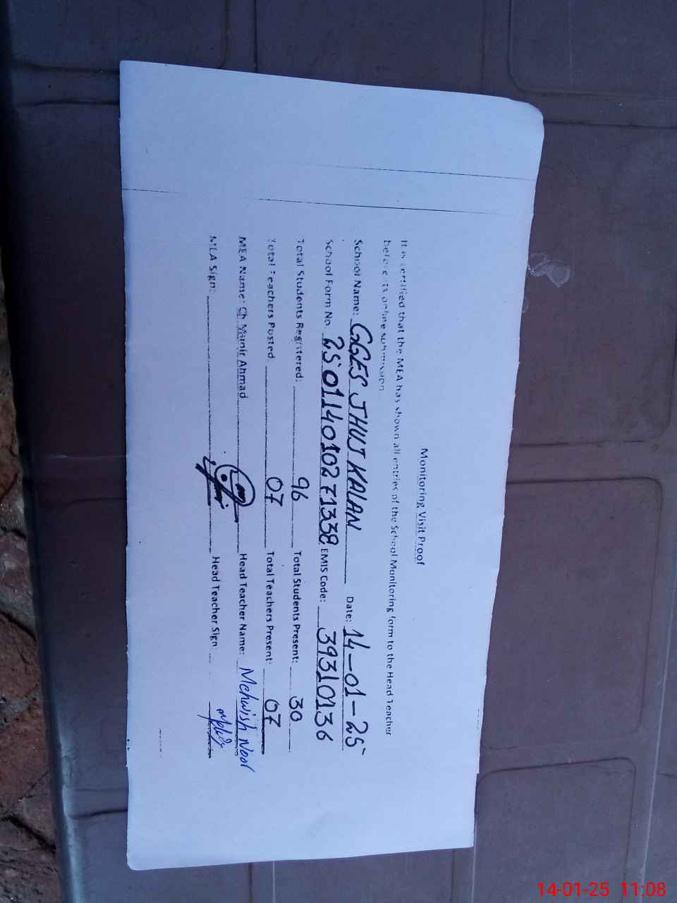 | EMIS Code: 39310136 | Name of School: GGES JHUJ KALAN | |||