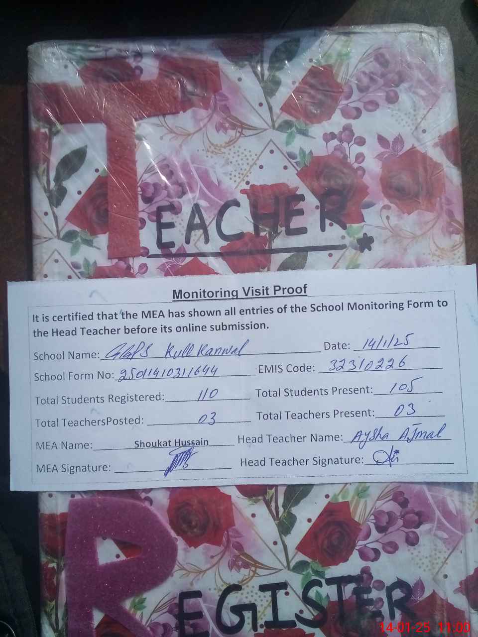 | EMIS Code: 32310226 | Name of School: GGPS KULL KANWAL | |||