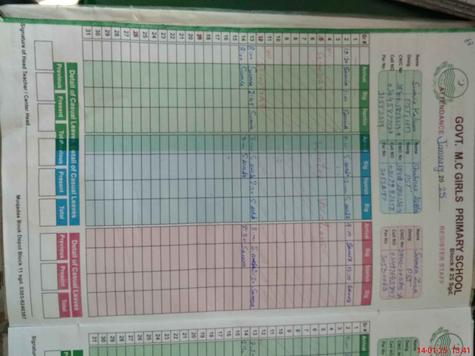 | Name: SU**** KA**** Designation: (School Headmaster's/Headmistress's) PST Phone/Cell Number: 03**** |
