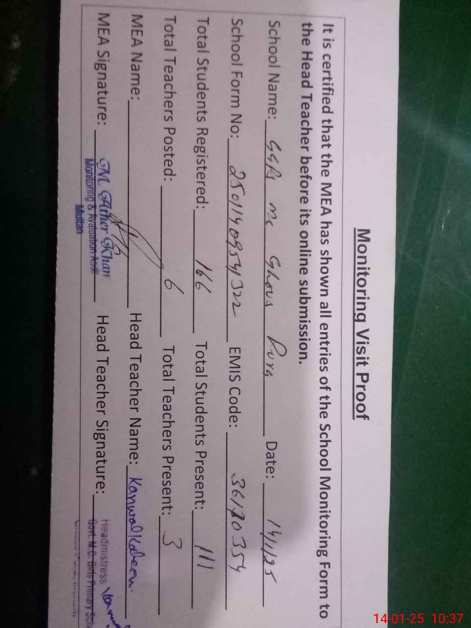 | EMIS Code: 36110354 | Name of School: GGPS MC GHOUS PURA | |||