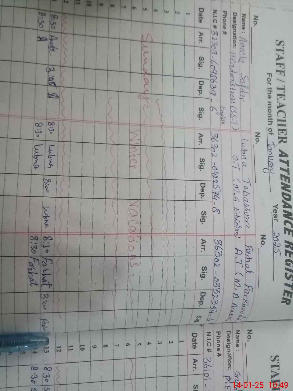| Name: Ze**** Fa**** Designation: (School Headmaster's/Headmistress's) S.S.T.(CS( Phone/Cell Number: 03**** |