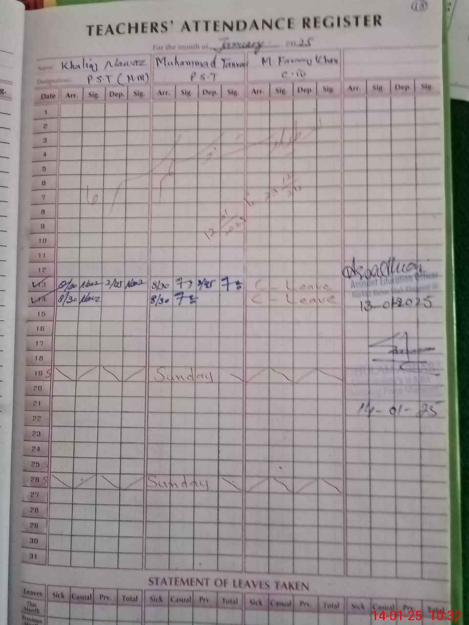 | Name: KH**** NA**** Designation: (School Headmaster's/Headmistress's) PST Phone/Cell Number: 03**** |