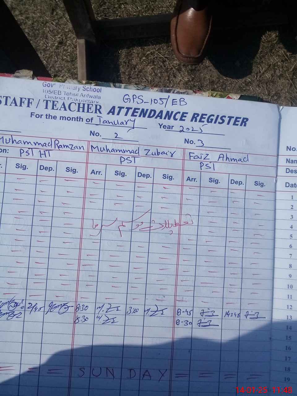 | Name: MU**** RA**** Designation: (School Headmaster's/Headmistress's) PST Phone/Cell Number: 03**** |