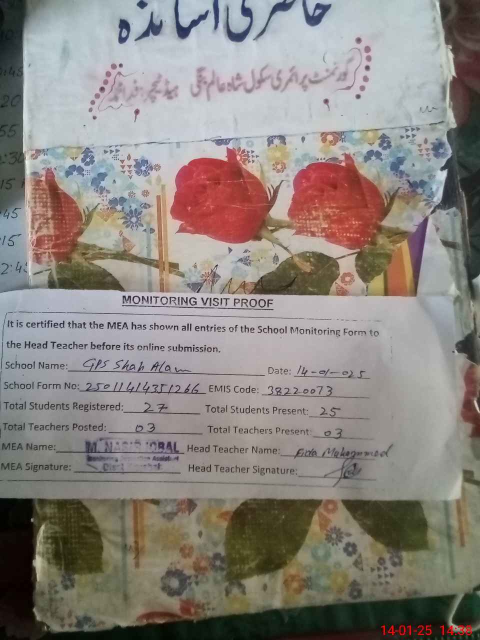 | EMIS Code: 38220073 | Name of School: GPS SHAH ALAM BINGI | |||