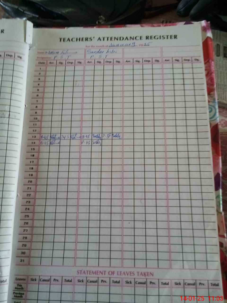 | CNIC | Full Name | Designation | R/C | Absence During Last Calender Month |
