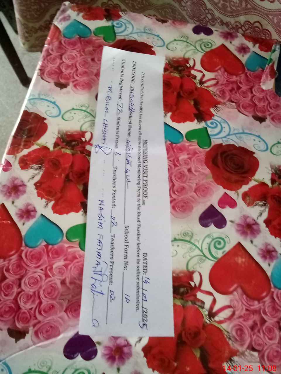 | Name: NA**** FA**** Designation: (School Headmaster's/Headmistress's) PTC/JV Phone/Cell Number: 03**** |