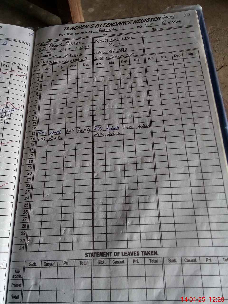 | Name: AA**** BA**** Designation: (School Headmaster's/Headmistress's) PST Phone/Cell Number: 03**** |