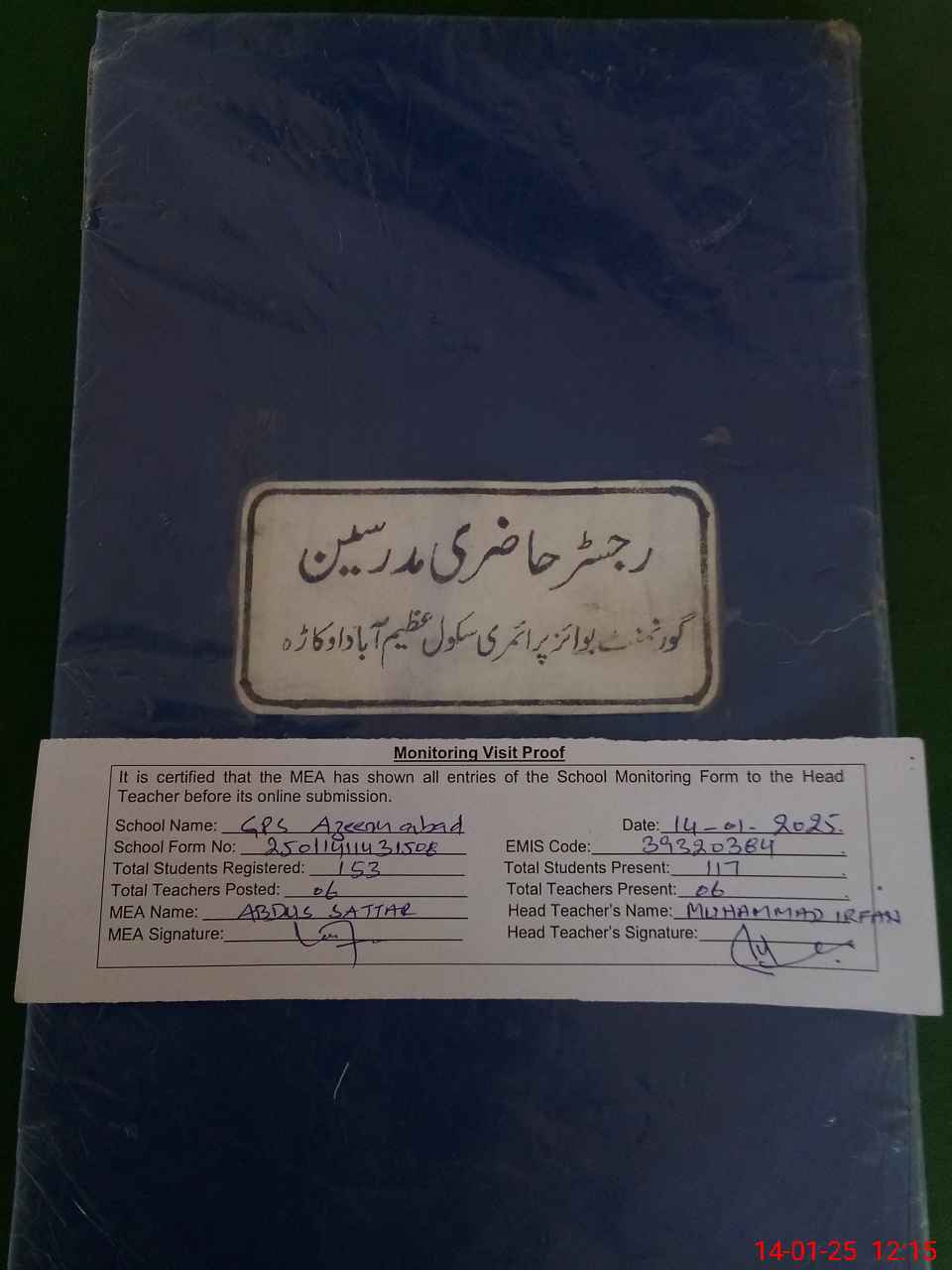 | EMIS Code: 39320384 | Name of School: GPS AZEEM ABAD , OKARA | |||
