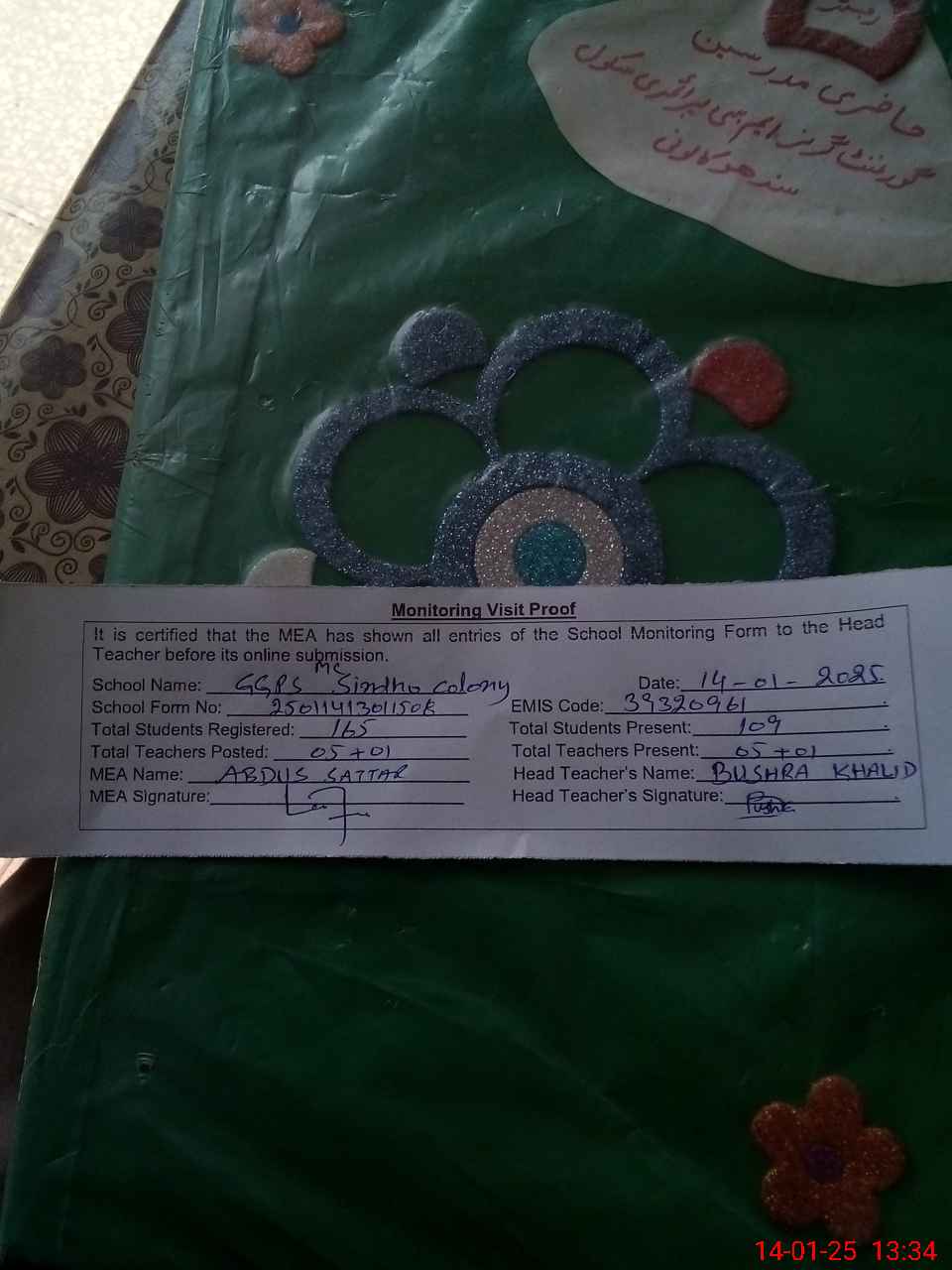 | EMIS Code: 39320961 | Name of School: GGPS MC SINDHO COLONY | |||