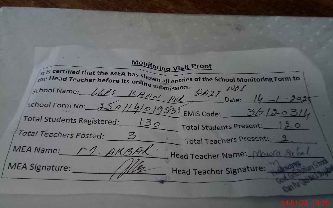 | EMIS Code: 36120314 | Name of School: GGPS KHAN PUR QAZI NO.1 SHUJABAD | |||