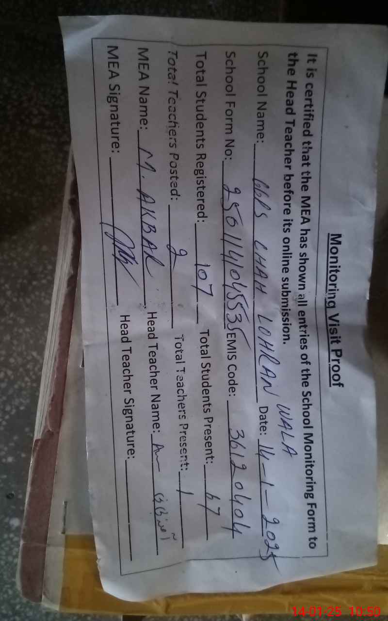 | EMIS Code: 36120404 | Name of School: GGPS CHAH LOHARAN WALA | |||