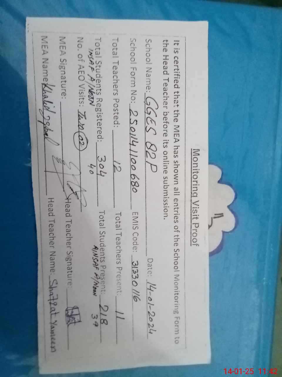 | Certified that this School was Inspected by the Undersigned MEA/DMO Today and the Information Stated Above is as Per Record. | |||||