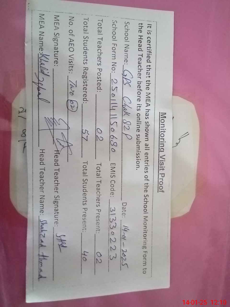 | EMIS Code: 31330223 | Name of School: GPS CHAK NO. 82/P | |||